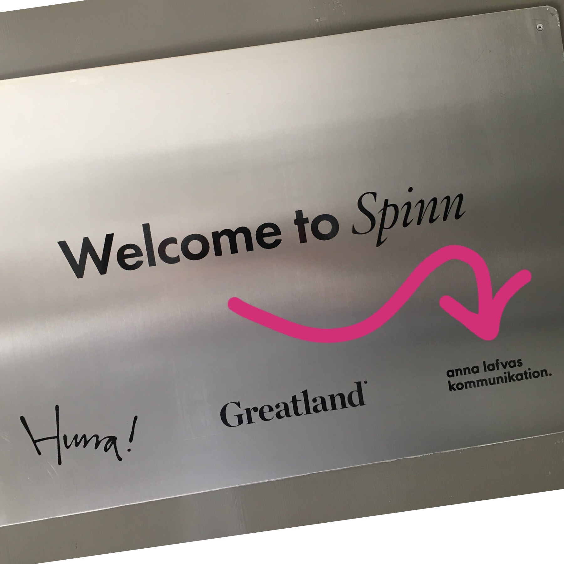 Jag sitter tillsammans med kollegorna på kommunikations-byrån Hurra! och vännerna på Greatland, tre trappor upp på Gävlegatan 12A i Stockholm, hemmahos reklambyrån Spinn. Finfin storfamilj.
